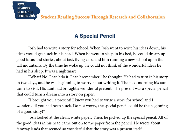 Varied Practice is much like Repeated Reading; however, students do not read the same exact passage multiple times. In Varied Practice, the passages read by students are very similar — 85% of the words in the passages are the same. This allows students to practise reading almost all of the same words in texts of the same syntactic difficulty, but with some variation.