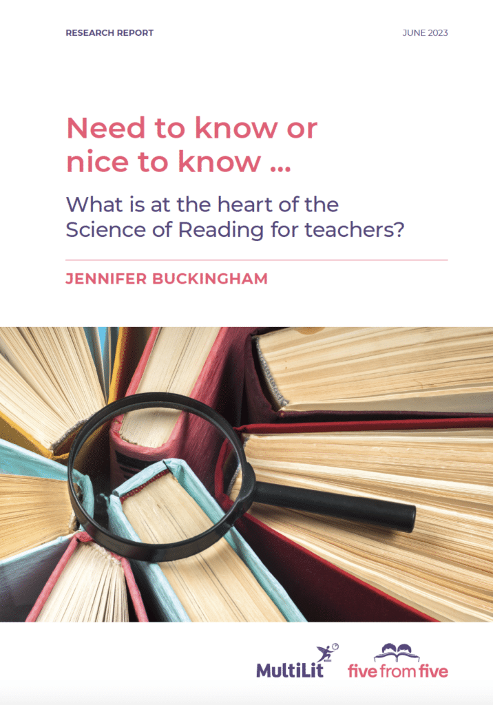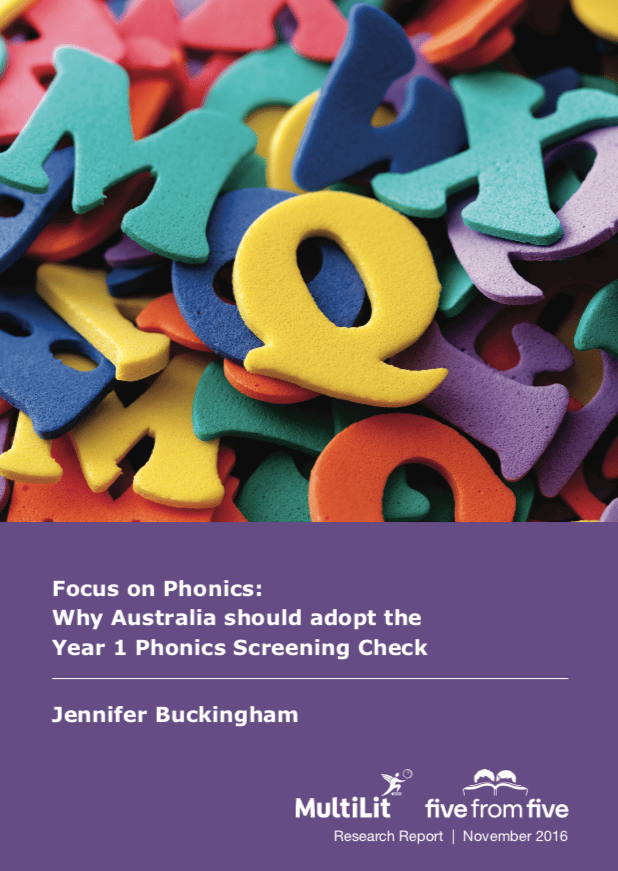 A full list of articles, chapters and papers authored by Dr Jennifer Buckingham can be found at ResearchGate and on the MultiLit website.