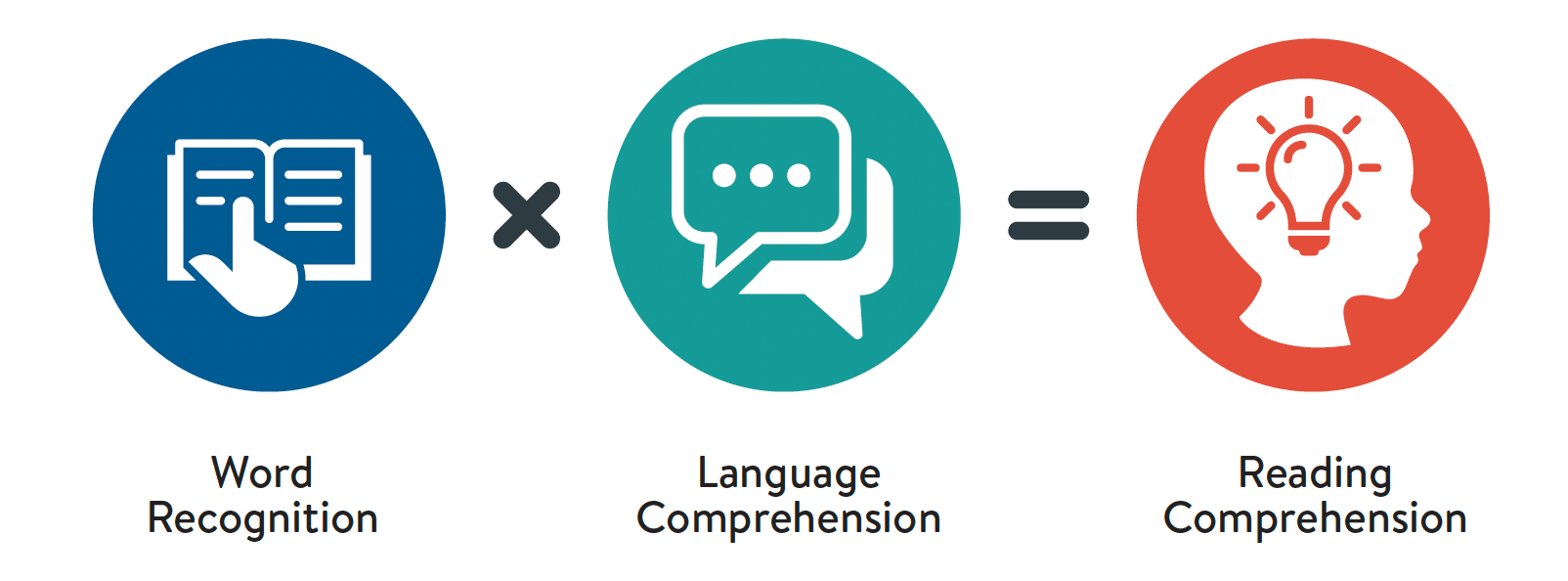 The Simple View of Reading states that reading comprehension is the product of two skills: word recognition (or decoding) and language comprehension. Or, put even more simply, being able to work out what the words are and knowing what they mean.